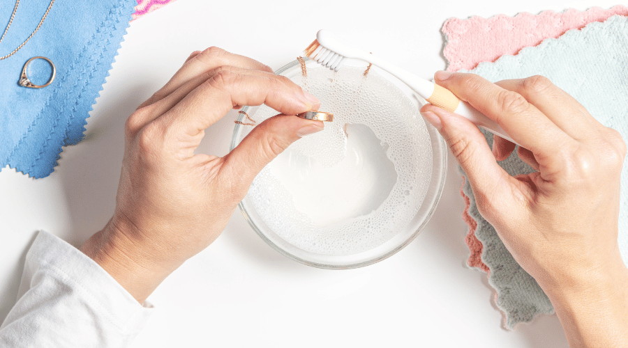 3. Gently scrub the jewelry with a soft brush to remove any oxidation.