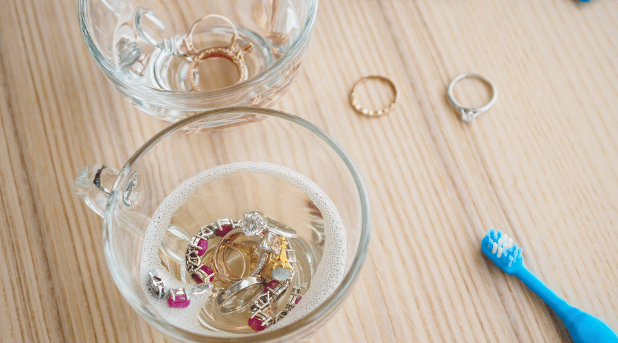 2. Submerge the rusty jewelry in the soapy water and let it sit for a few minutes to loosen any dirt and rust.