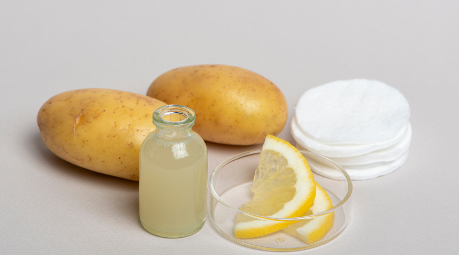 - The next morning, grind it into a paste. Take a whole potato, grate it and extract the juice with a spoon or a clean cloth.