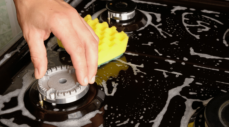 5. Use a damp cloth or sponge to gently scrub the burners to remove any dirt.
