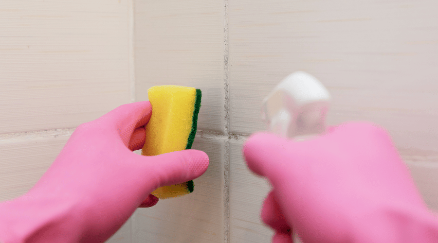 - Apply the mixture to the bathroom tiles, focusing on the areas with difficult stains.