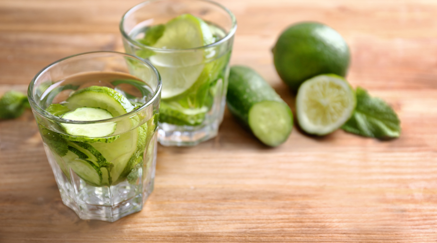 1. In a blender, combine the cucumber, mint leaves, and distilled water.